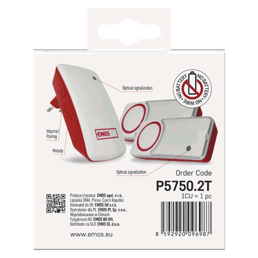Akuta kodune juhtmevaba uksekell P5750.2T, pistik, 2 nupuga
