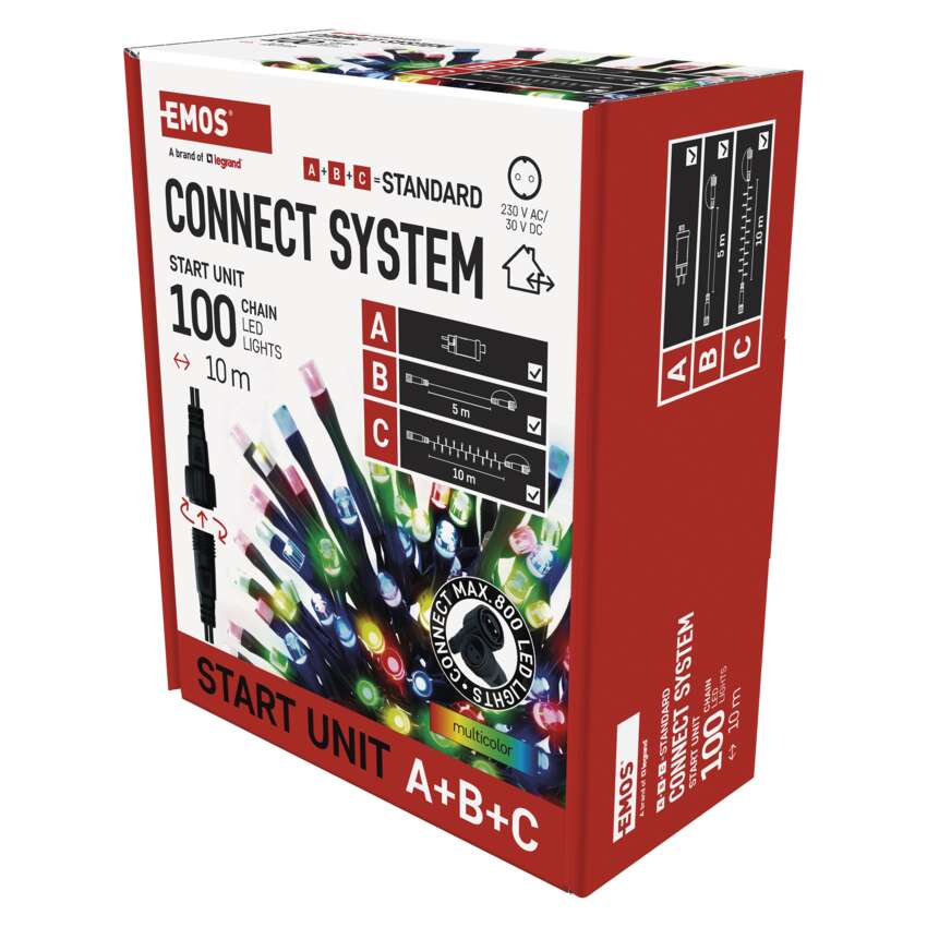 Süsteem CONNECT SYSTEM STANDARD sobib tänu IP44 klassifikatsioonile nii sise- kui ka välitingimustes kasutamiseks, kuid ainult hooajal, mitte aastaringselt. Selle ühendussüsteemi eeliseks on laia valiku LED-valguselemendid(C) mitmes erinevas värvitoonis. Kuigi kõige populaarsem jõuluvalgusti on kett, saate ühendussüsteemis valida jõulupuu tippu stalaktite, kardinate, võrkude või tähtede vahel vastavalt oma disainisoovidele. Ühest toiteallikast(A), mis on ühendatud pikenduskaablite, jaoturite(B) ja LED-valguselemendid(C) saavad toidet kuni 800 LED-valgustile.