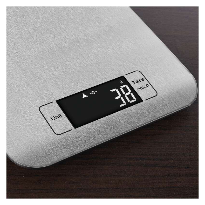 Es otsite usaldusväärset ja suure kaalutäpsusega köögikaalusid? Roostevabast terasest kaalul on puhas disain ja lihtne kasutamine. Eeliseks on valgete numbritega taustavalgustusega ekraan ja äge TARE funktsioon, mis muudab kaalumise küpsetamise või toiduvalmistamise ajal lihtsamaks. See teeb kaalust mitte ainult praktilise parema käe igale kokale, vaid ka stiilse täienduse kaasaegsesse kööki.