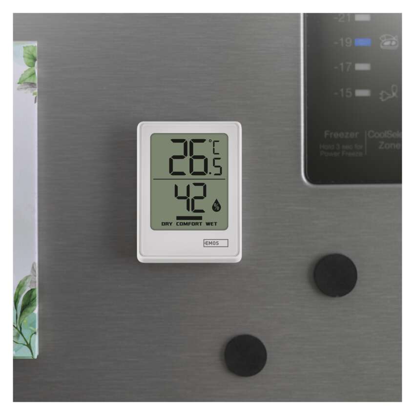 E0345 termomeetri eeliseks on selle paiknemise mitmekülgsus. Võite seadistada selle laual või riiulil, riputada selle seinale või kasutada tagaküljel olevat magnetit, et seda hõlpsasti kinnitada mis tahes metallpinnale.