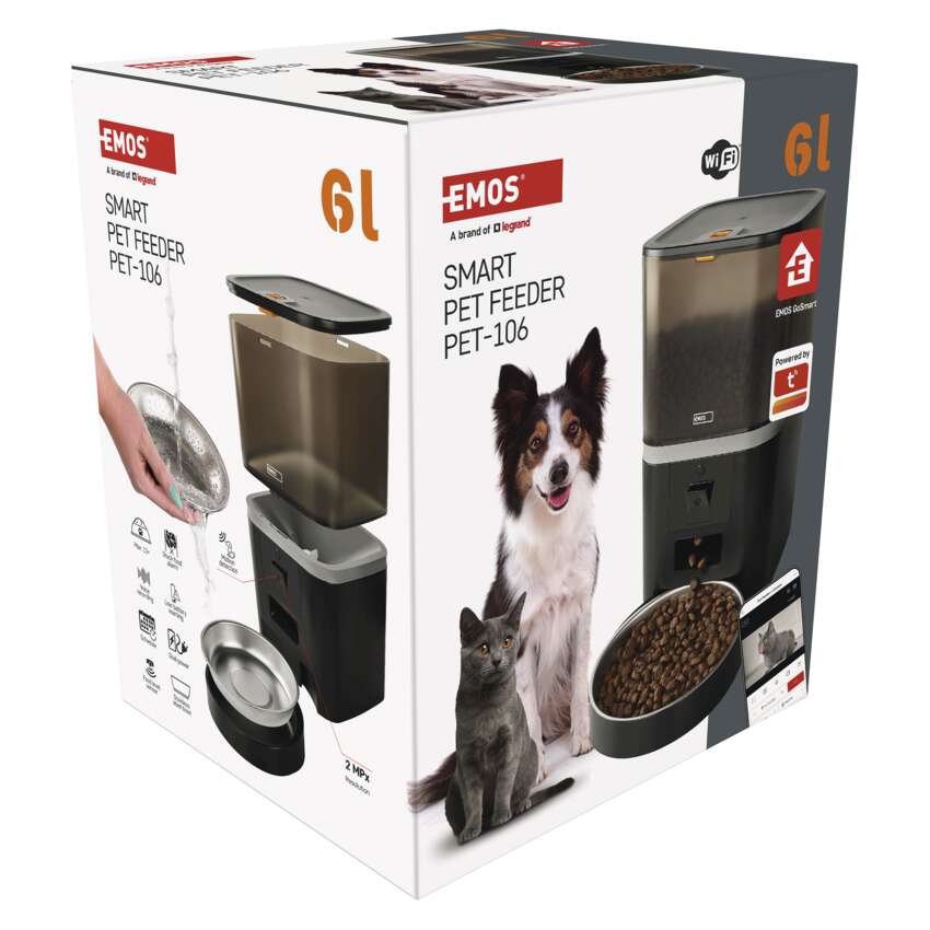 Smart Feeder ühendub lihtsalt suhtlusvõrku Emos GoSmart mobiilirakenduse kaudu, mis on saadaval Androidile ja iOSile. Tänu sisseehitatud kõlarile ja mikrofonile saate salvestada teate oma kassile või koerale, et tuletada neile meelde, et on aeg sööta, või rääkida nendega reaalajas.