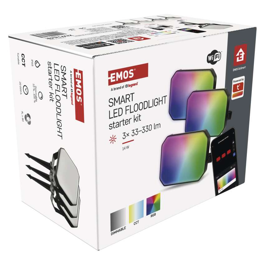 GoSmart välis-LED-prožektor, stardikomplekt, 3 osa, 14 W, RGBIC dimmer, WiFi