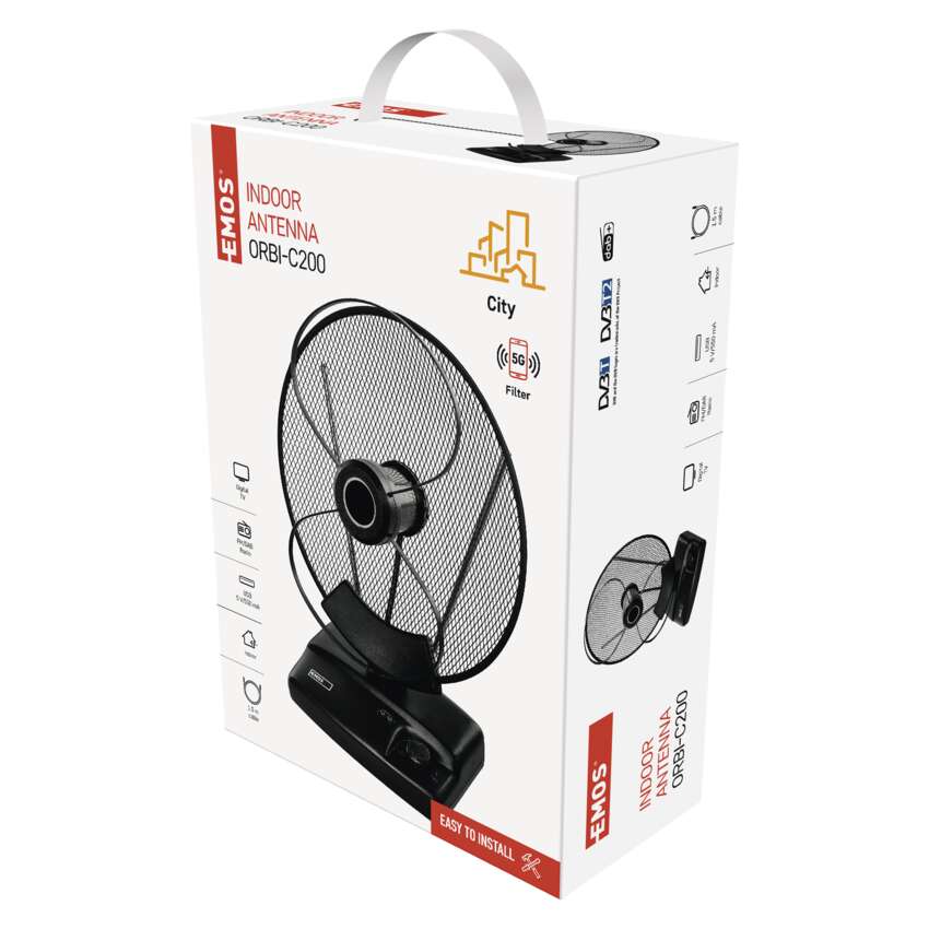 Kui soovite vaadata televiisorit või kuulata oma lemmiklaule, siis EMOS ORBI-C200 on teie jaoks ideaalne toaantenn. See suudab võtta DVB-T ja DVB-T2 signaale kvaliteetselt, samuti FM ja DAB sagedusi 180°. Lisaks on õige nurga seadistamine lihtne, sest antenn toetab nii vertikaalset kui ka horisontaalset polarisatsiooni.