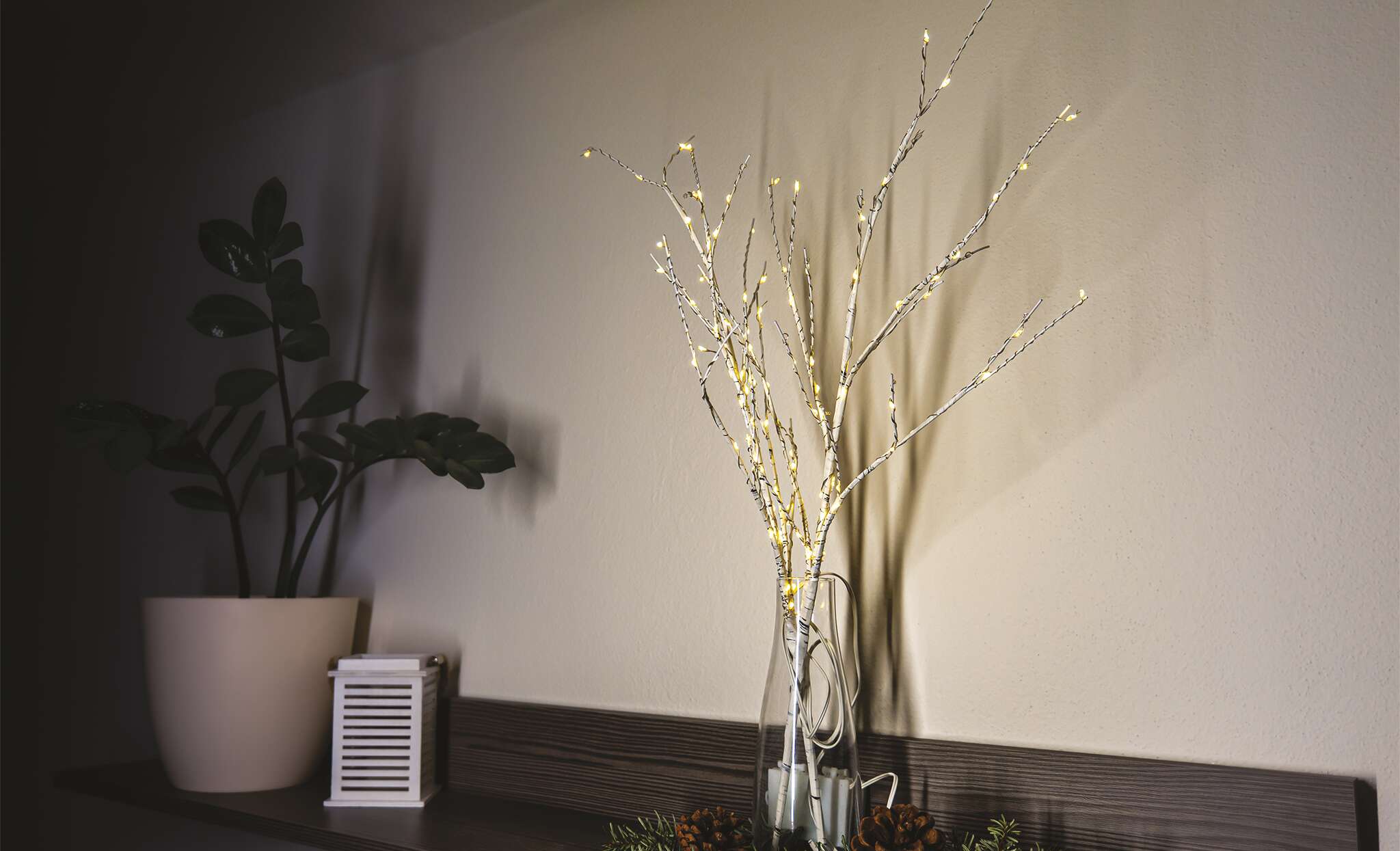 Loo kodus nõrgalt valgustatud vaatepilt, mis võlub oma loomuliku välimuse ja peene valgusefektiga. Kahe 100 valgusdioodiga kahest kaseharust koosnev komplekt toob moodsa ja samas loomuliku võimaluse luua jõulu- või aastaringset atmosfääri. Koristust saab paigutada ka väljakule. Näiteks helendage oma aknakastid, rõdu või looge maagiline vaikne elu oma koduukse ees.