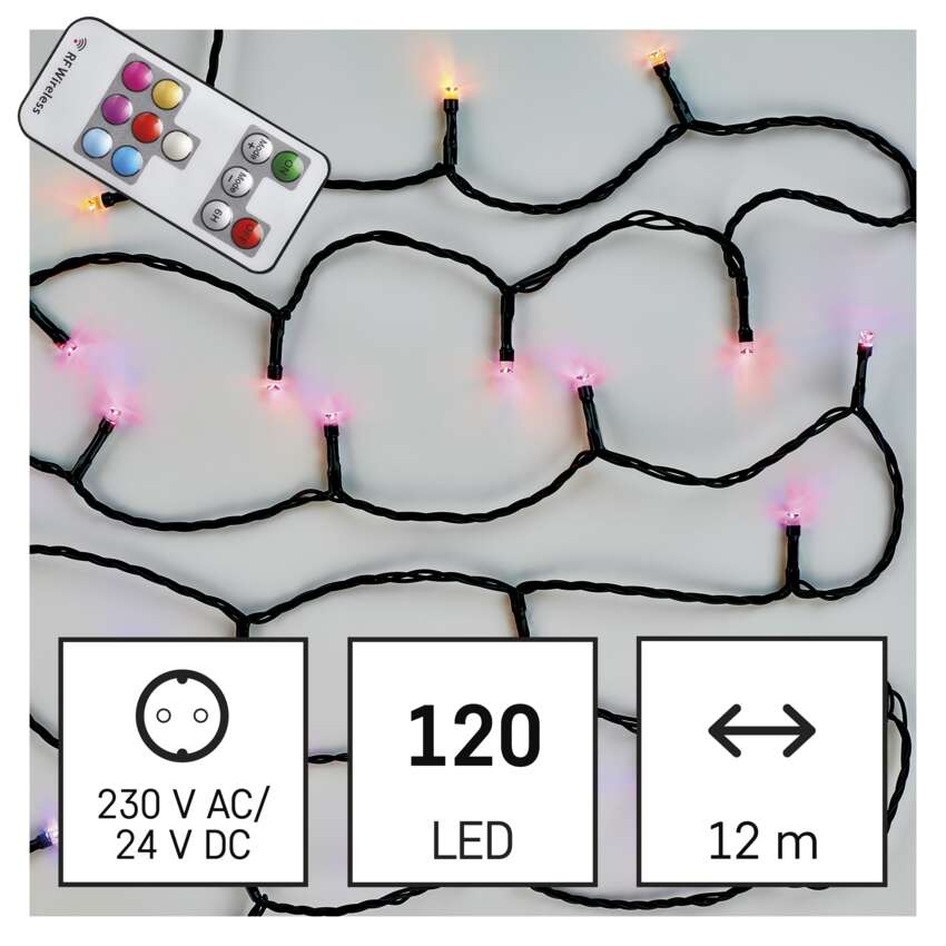 Klassilised jõuluketid koos animatsiooniga pakuvad palju kasutusvõimalusi ja võivad valgustada kogu teie maja, korterit või aeda. Need sobivad eriti hästi Jõulupuu jaoks. Seda saab kasutada ka kaitselaua, pergola või muudes kohtades , kus need ei leia aastaringselt kasutust. Saate neid juhtida praktilise kaugjuhtimispuldiga, mille abil saate valida ühe 72 värvistseenist. Üksikud stseenid erinevad valguse värvi, tüübi värvimise, järkjärgulise valgustuse (animatsioon) või LED-tulede värvi muutmise poolest.Kindlasti võidab sind ka timer-funktsioon, mille aktiveerimisel süttib kett korduvalt 6 tundi ja lülitub seejärel 18 tunniks välja.