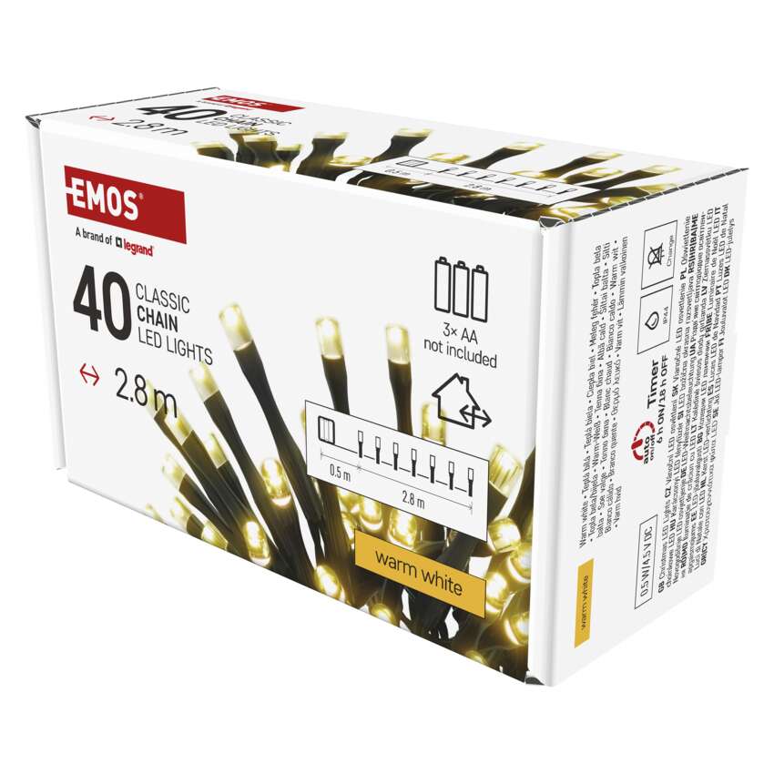 LED jõuluvalguskett, 2,8 m, 3 x AA, õue/tuppa, soe valge, ajasti