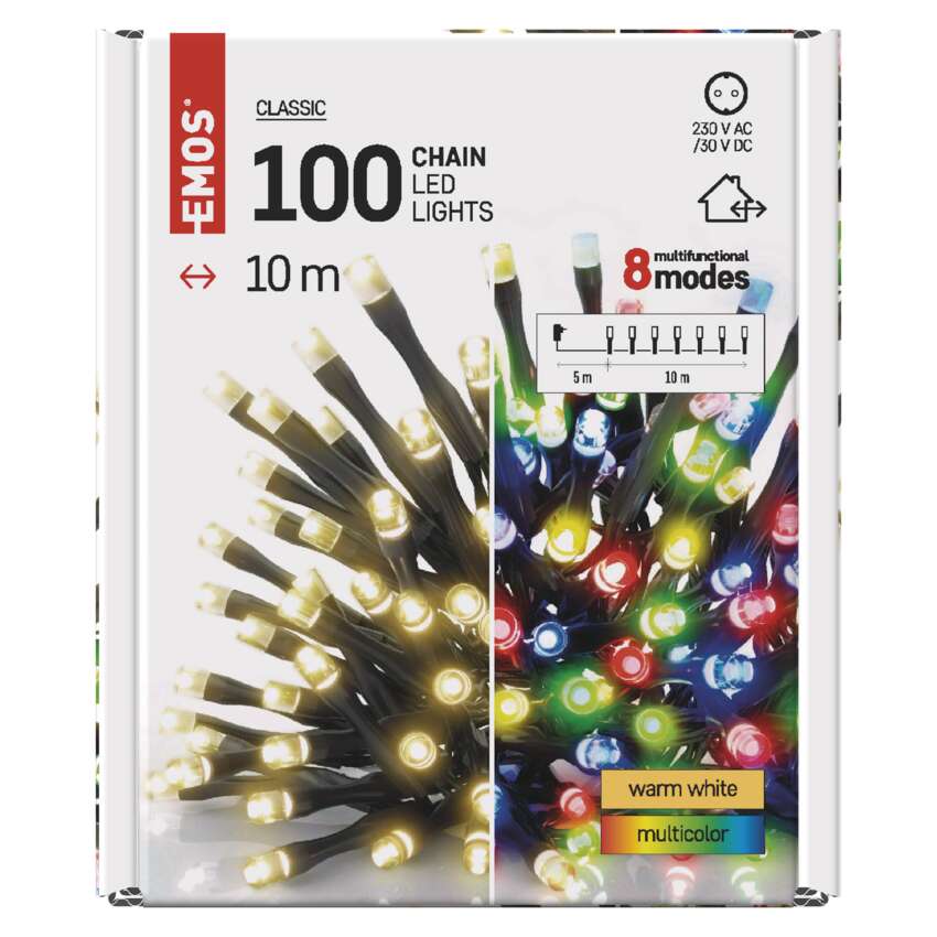 EMOS CLASSIC LED-ketid on saadavad mitmes vormis - klassilised ketid, klastrid ja stalaktiidid. Need on asendamatud sellise piduliku atmosfääri loomiseks. Näidavad suurepäraselt välja traditsioonilisel jõulupuul, sobivad mööbli, piirded, talad või aukude kaunistamiseks siseruumides.Neid saab kasutada ka õues, et valgustada oma põõsaid, puid, pergolasid, vaatetorusid jne.
