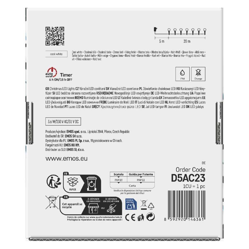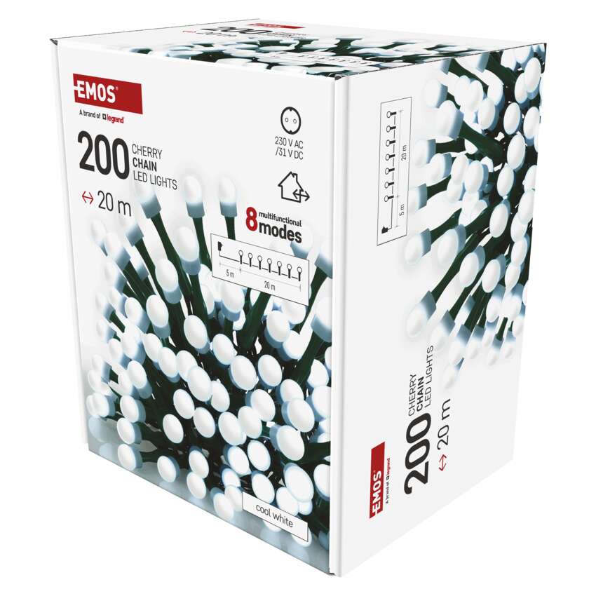 LED jõuluvalguskett kirsikobarad - kuulid, 20 m, õue/tuppa, külm valge, 8 režiimi, ajasti