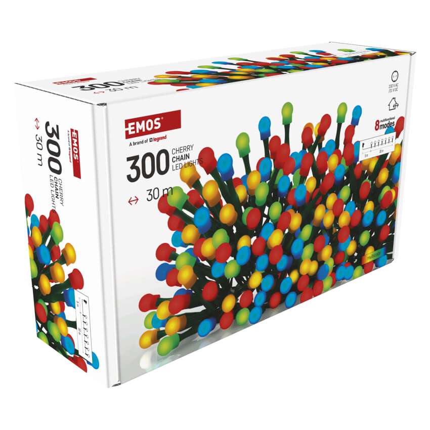 LED jõuluvalguskett kirsikobarad - kuulid, 30 m, õue/tuppa,mitmevärviline,8 režiimi,ajasti