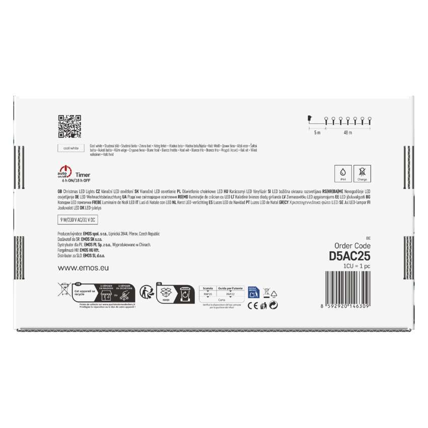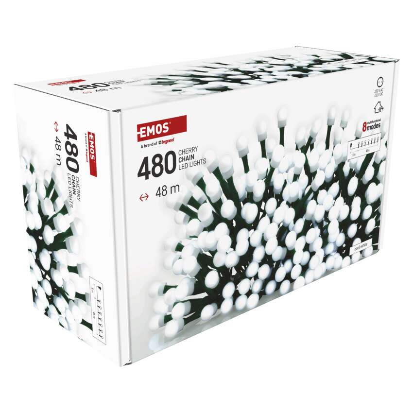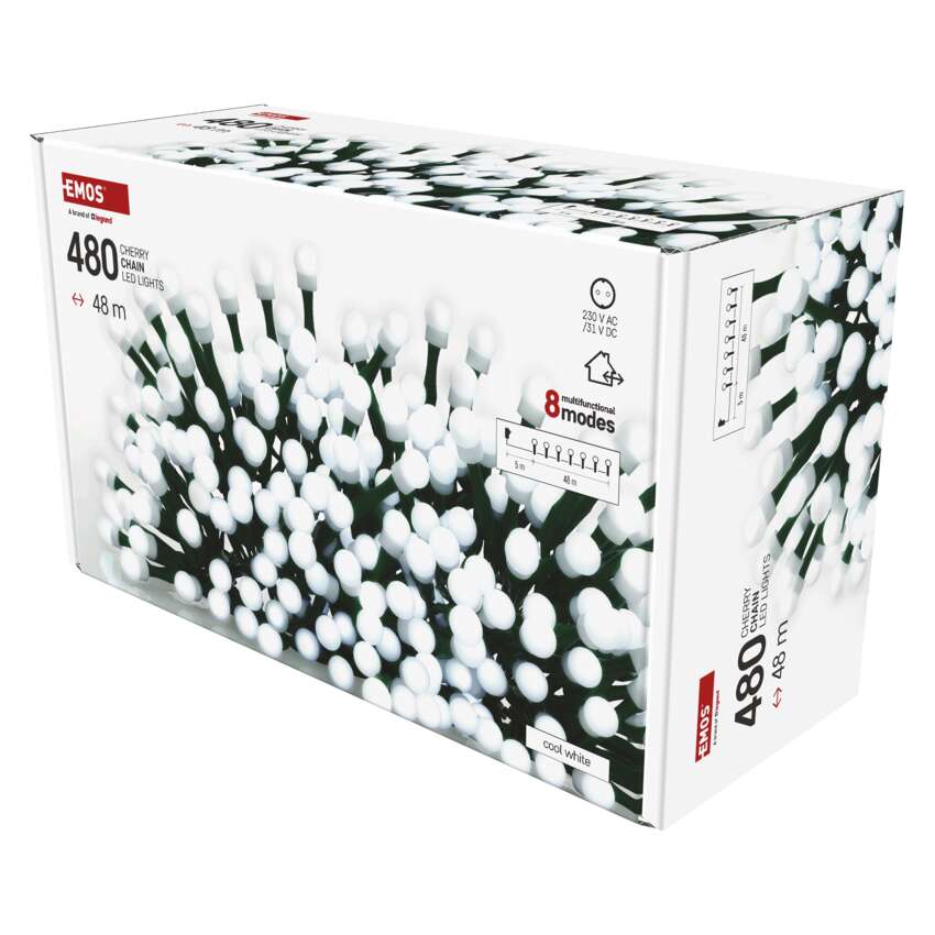 LED jõuluvalguskett kirsikobarad - kuulid, 48 m, õue/tuppa, külm valge, 8 režiimi, ajasti