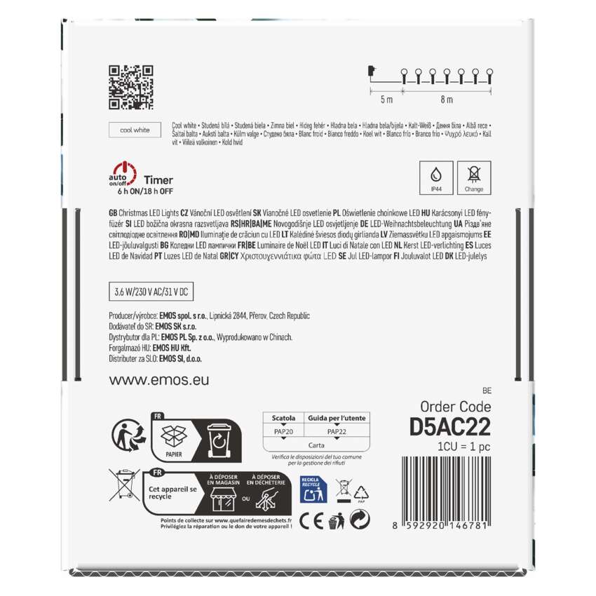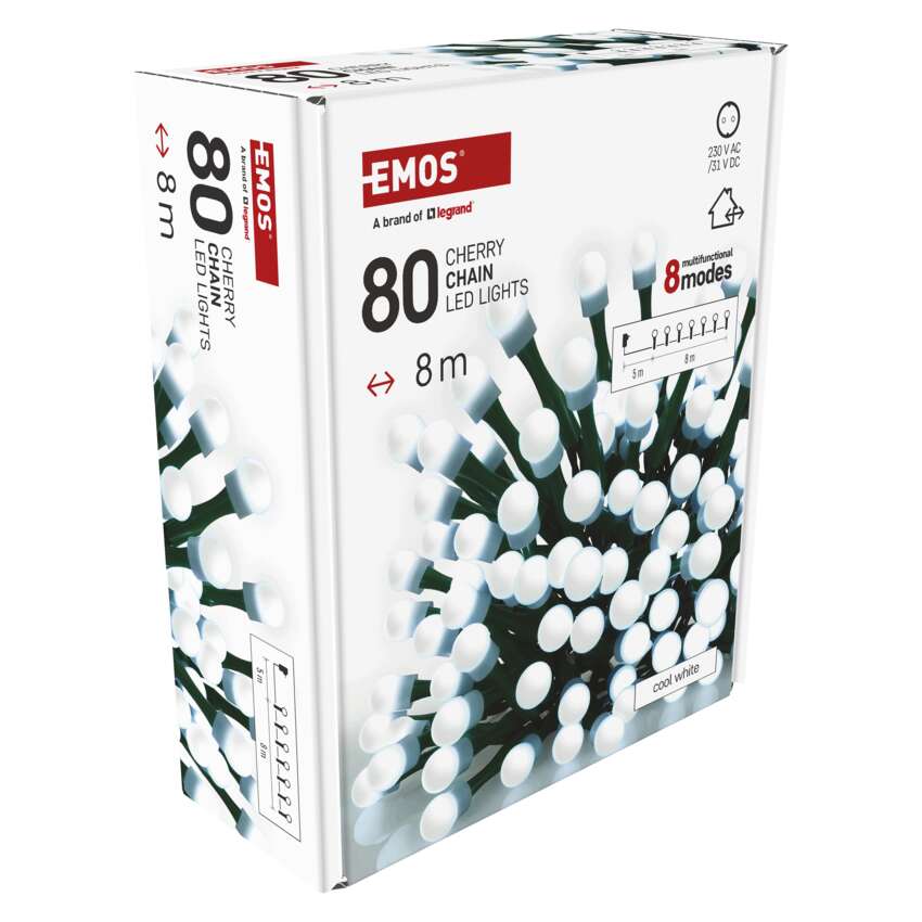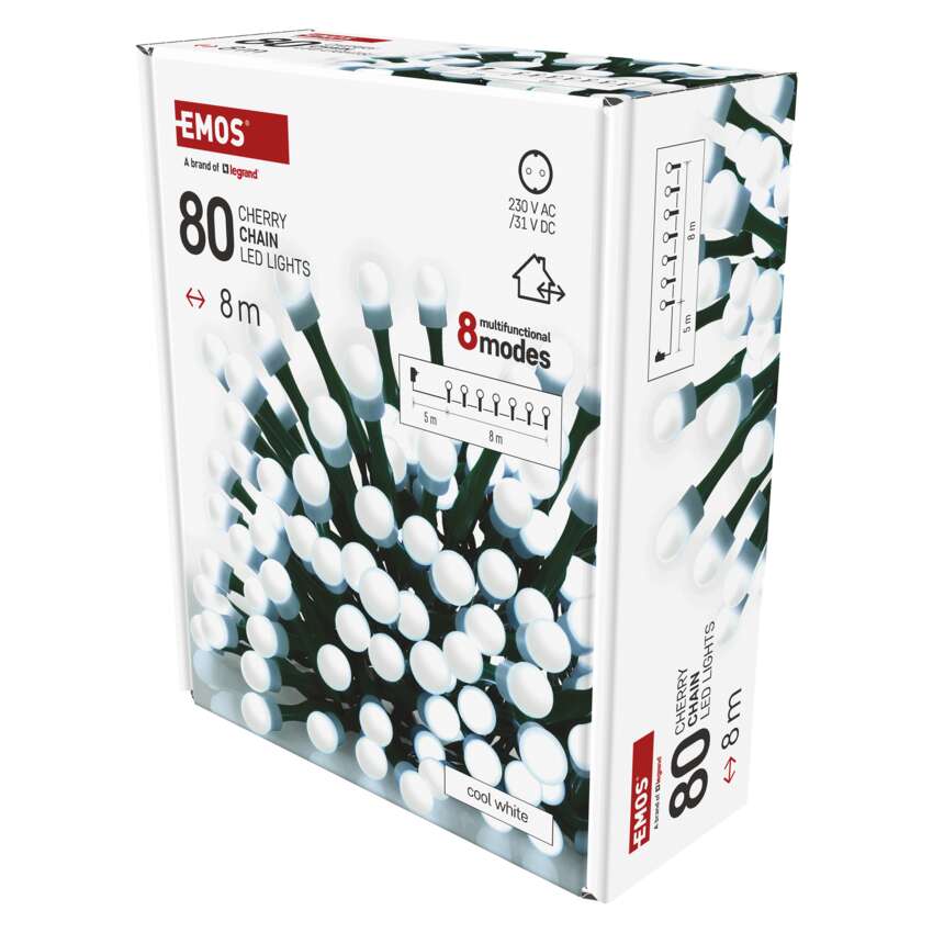 LED jõuluvalguskett kirsikobarad - kuulid, 8 m, õue/tuppa, külm valge, 8 režiimi, ajasti