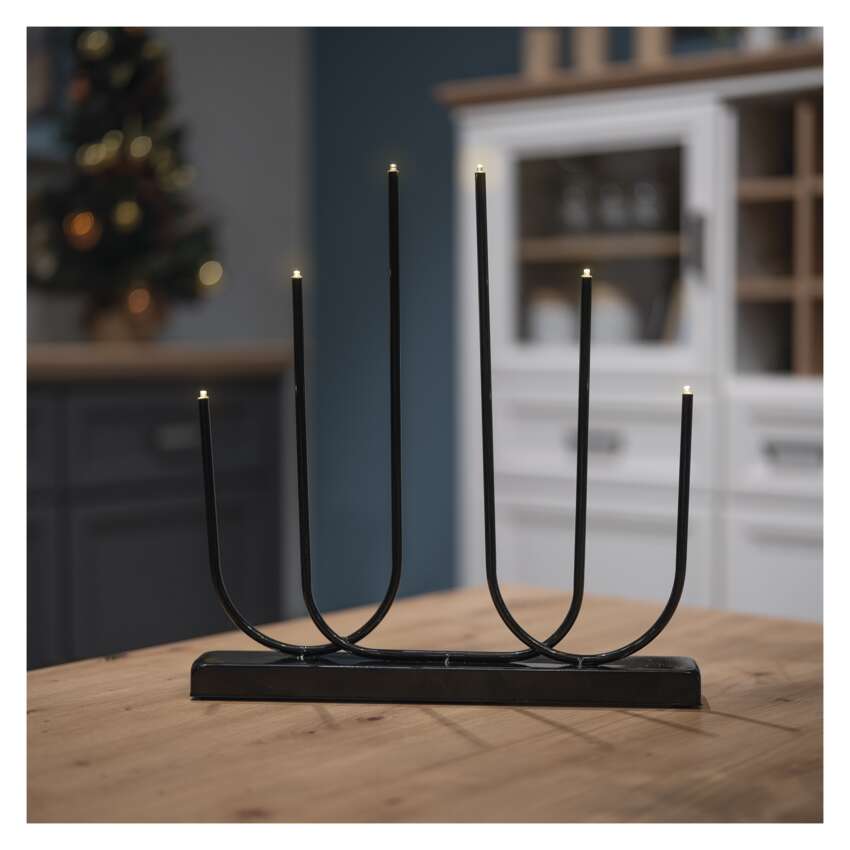 See moodne küünlajalg, millel on puhtad jooned ja mustast metallist korpus, saab iga interjööri oluliseks elemendiks. Tänu 6-le pehmele soojale valgele valgusdioodile loob see meeldiva ja hubase atmosfääri, ilma et oleks vaja lahtist tuld. LED-tehnoloogia on ka ökonoomne ja keskkonnasõbralik - küünlajalg ei kuumene töötamise ajal, mis on eriti hinnatud kodudes, kus elavad lapsed või lemmikloomad.