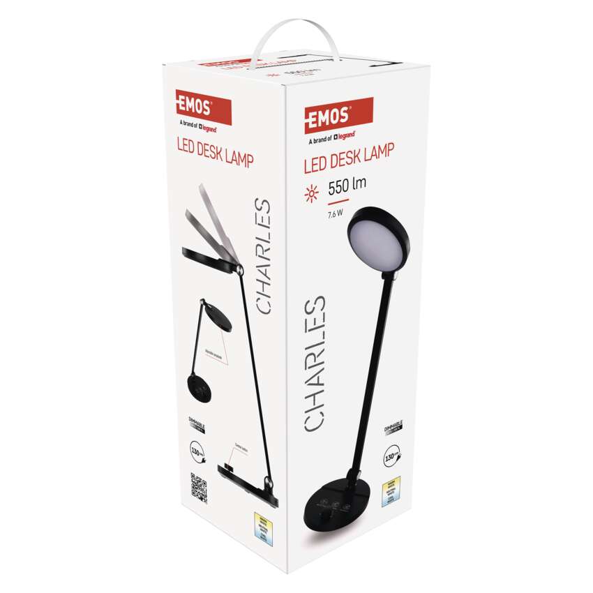 Muude see pole veel kõik! Hoidke juhtnuppu kinni ja keerake seda, et muuta valguse värvi. Koos kõrge valgusvoo 550 lmga saab CHARLES lambist teie ideaalne abimees kõikidel töölaua tegevustel, kus hea valgustus on hädavajalik.