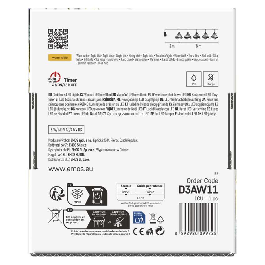 Mitte ainult jõulupuu valgustamiseks pakume EMOS kaubamärgi all hulgaliselt LED-kette, mis paistavad silma väikese energiatarbimise ja pika eluea poolest. Saate valida ainult siseruumides (IP20), ainult välitingimustes (IP44) või akutoitel töötavate jadade vahel, mis on ideaalsed pistikupesa juurdepääsuta ruumide kaunistamiseks. On olemas neli LED valgusahelat, mis erinevad LEDide suuruse ja kuju poolest - NANO - CLASSIC - CHERRY - TRADITSIOONILINE. Otsustavad kriteeriumid õige keti valikul on selle pikkus, LEDide arv ja valguse värvus.