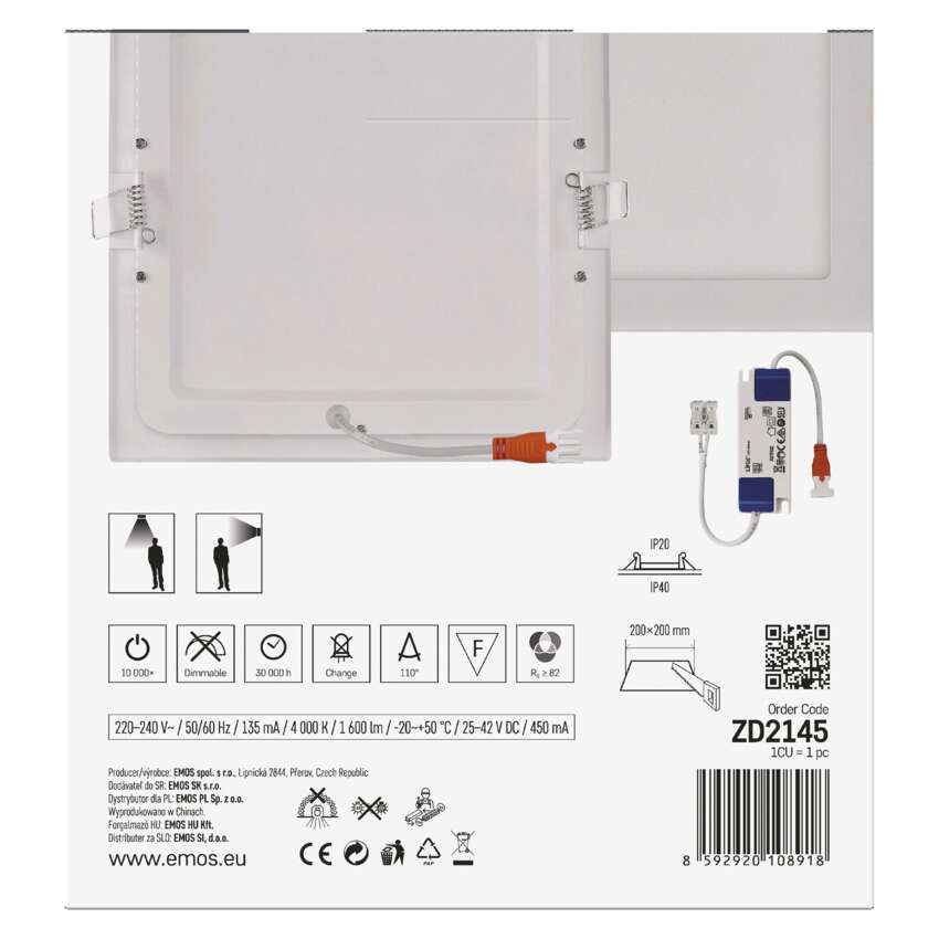 | IP-reiting | IP40/IP20 |