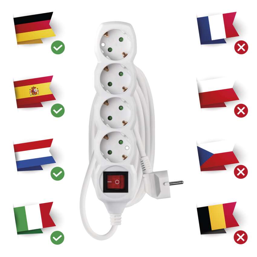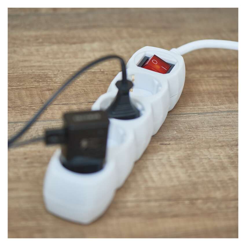 Pikendusjuhe 3 m / 4 Pistikupesa / koos lülitiga / valge / PVC / 1,5 mm2