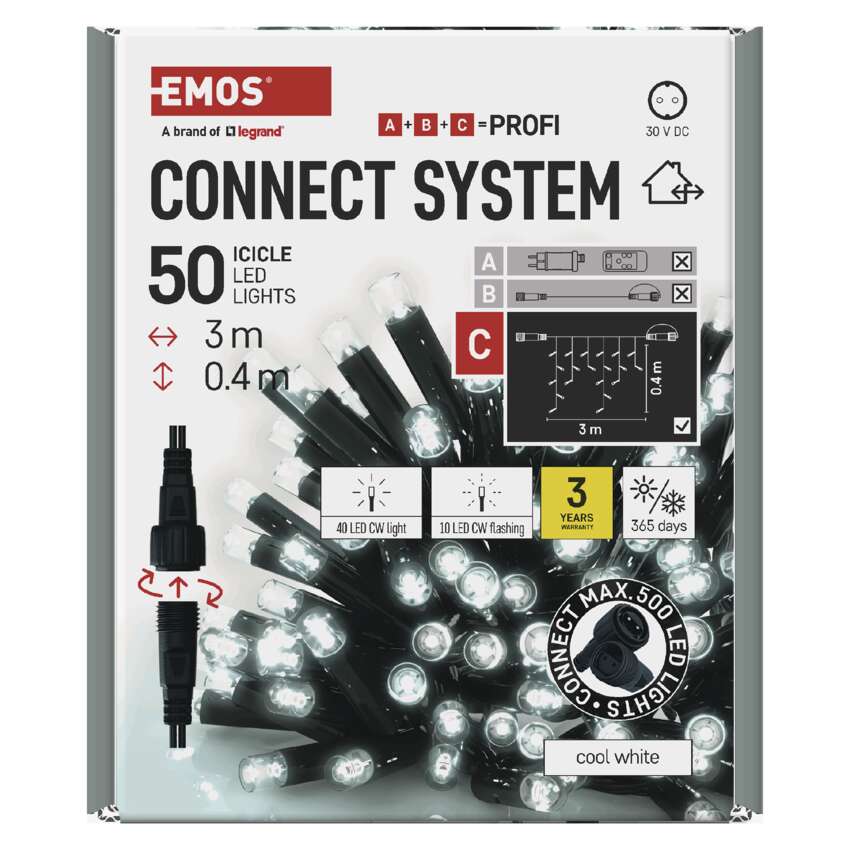 CONNECT SYSTEM PROFI LED stalaktite (jääpurikad) on saadaval 3 m pikkuses ja 0,4 m kõrguses. Kui otsite värvi, mis sobib kõige paremini teie maja välis- või siseruumidesse, saate valida sooja valge, jaheda valge või värvikombinatsioonide vahel, kus on mitu LED-tuld ühes ahelas.