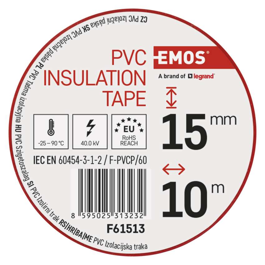 PVC-isoleerteip 15 mm / 10 m punane, 10 tk