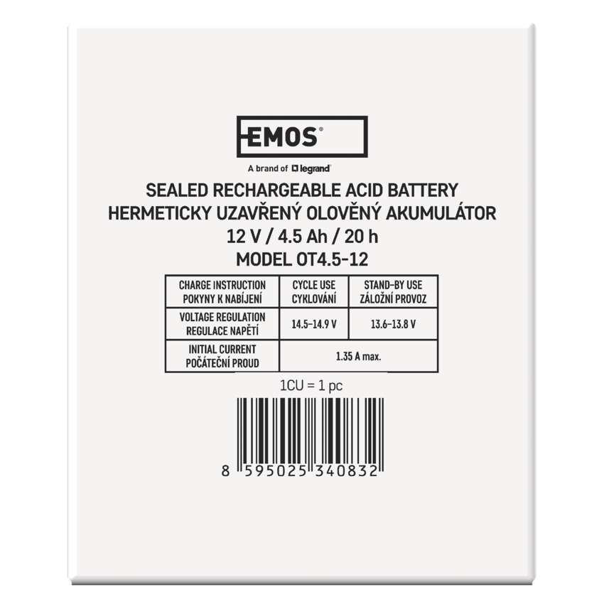 SLA (suletud pliihappe) aku 12 V/4,5 Ah, kinnitus 4,7 mm