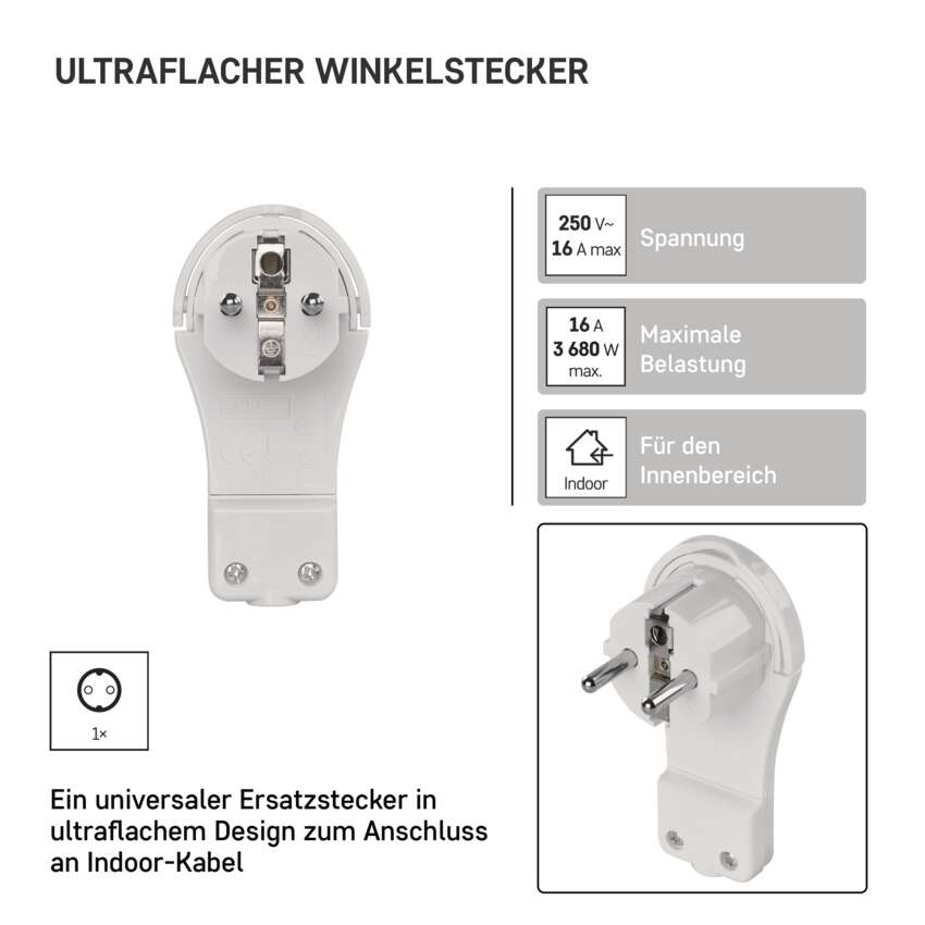 Täisnurgaga pistik pikendusjuhtmele, valge, Ultra Thin