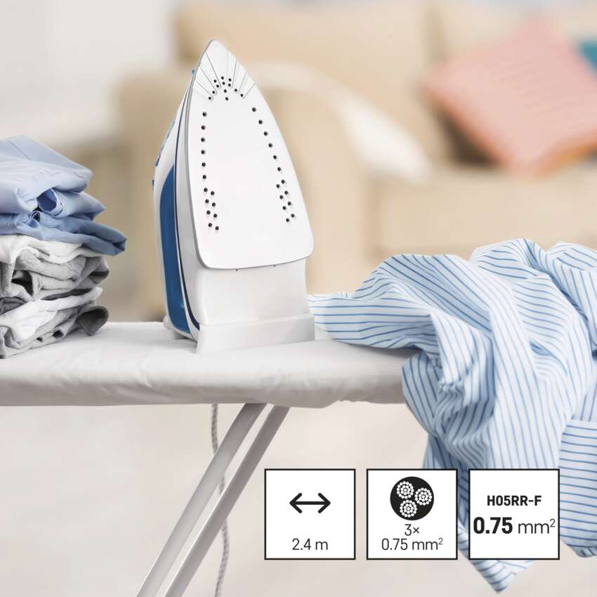 Toitejuhe tugevdatud tekstiilkattega 3 x 0,75 mm2 triikrauale, 2,4 m
